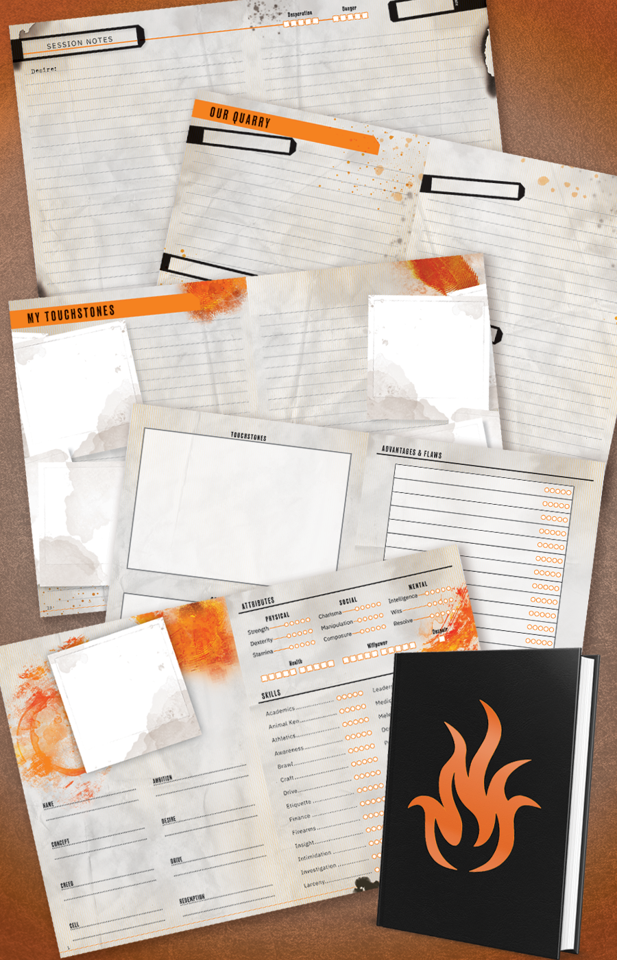 Interior layout design for Hunter: The Reckoning 5th Edition Roleplaying Game Expanded Character Sheet Journal